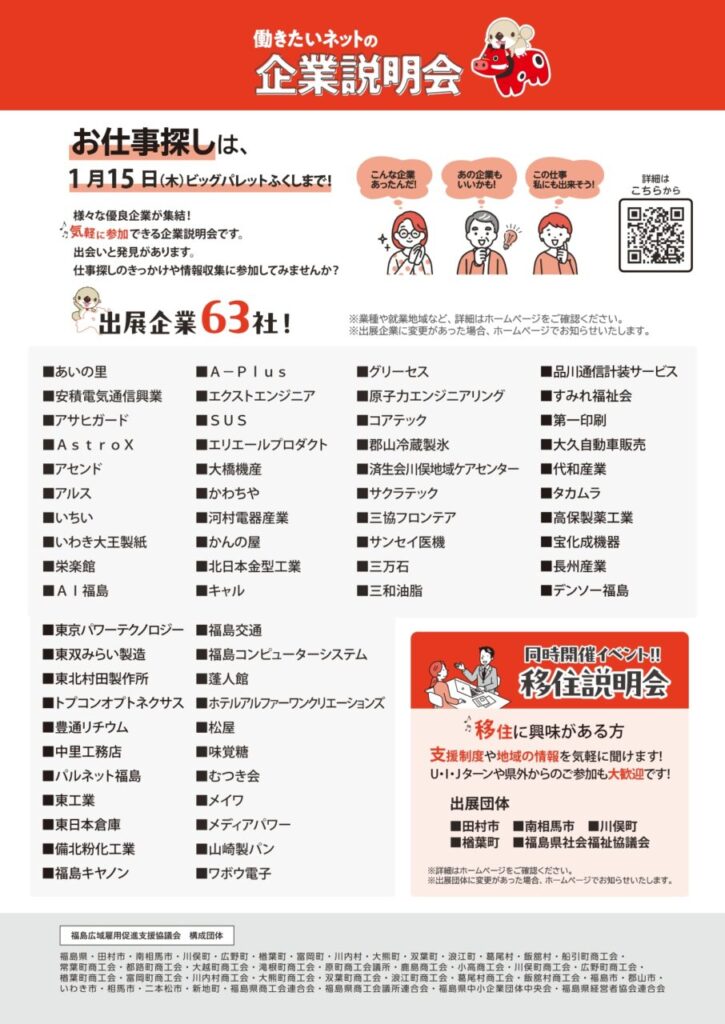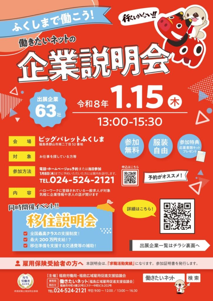 令和8年1月15日㈭ 働きたいネット「ふくしまで働こう企業説明会」に出展決定しました。